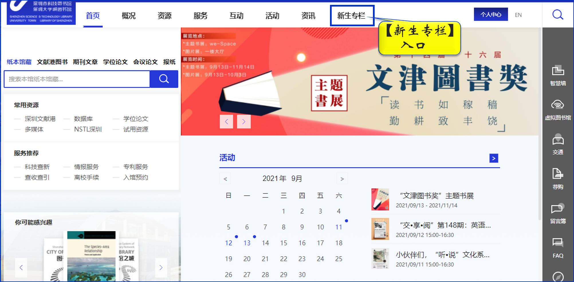 【新生专栏】官网入口:深圳大学城图书馆官网【首页】-【新生专栏】