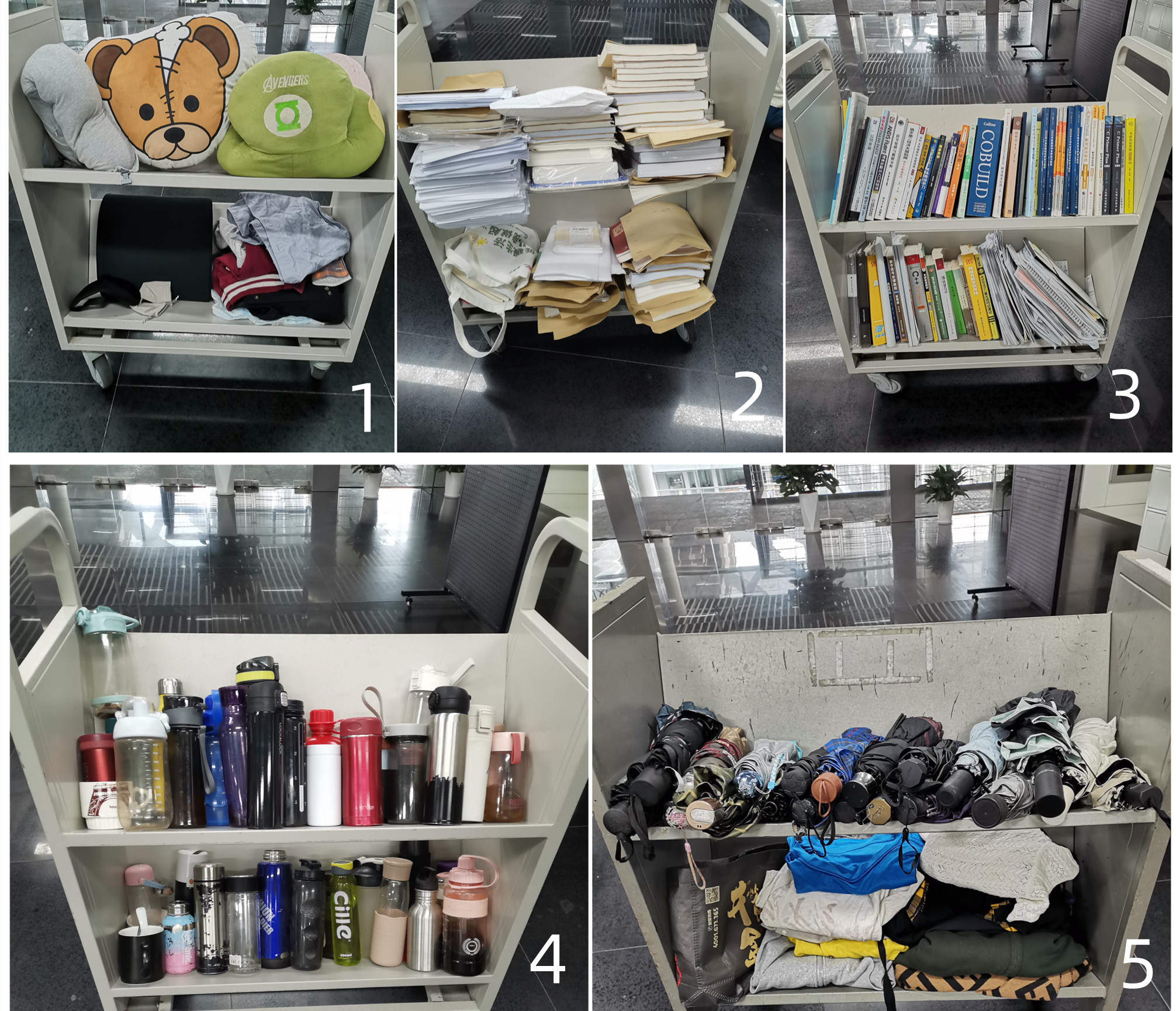 依据图书馆《失物招领管理办法》第七条规定“从拾获日期开始计算30天后仍无人认领的遗失物品,图书馆将有权自行进行处理。”图书馆现对一批已超30天(2021.10.1.-2022.4.30.)无人认领的失物进行公开认领。该批物品以水杯、雨伞、衣物、图书为主,鉴于近期社会读者必须预约才能进入深圳大学城,本次主要采用线上公开认领的方式。公开认领时间从2022年6月16日至31日,公示期间读者请在下图查找自己的物品,至电:0755-26032935,告知工作人员自己物品在几号图片、书车的第几层、具体是什么物品(图书需要提供书名)。工作人员将另行保存,待能入馆后按《失物招领管理办法》来馆认领。公示结束后仍无人认领的物品,将作为垃圾处理。
