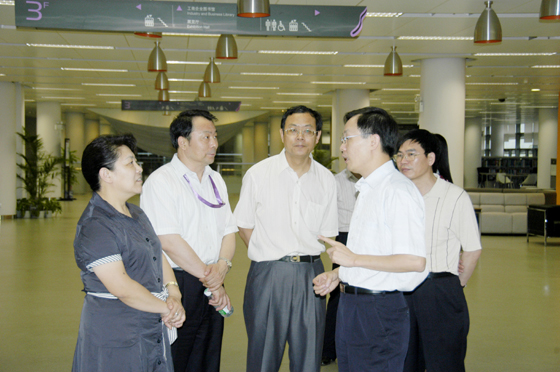 5月17日,天津市副市长张俊芳女士一行6人在深圳大学城管委办副主任张儒林、综合处处长戴兴毅陪同下来我馆参观。在张儒林副主任全面风趣的介绍下,张副市长一行仔细考察了我馆的各项服务工作。我馆独特的功能定位、现代舒适的服务设施和针对读者需求提供的个性化服务给参观团成员都留下了深刻的印象。