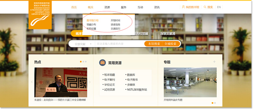 老网站于2007年建成,其当时的设计风格和网站架构已经不符合当前网站的表现形式,也不能完全展示图书馆当前的发展状况。