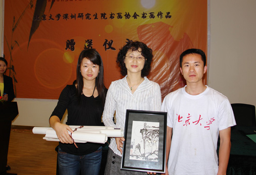 3月30日,一个细雨朦胧、空气清新的美丽春日,深圳市科技图书馆迎来了开馆周年誌庆的大喜日子,馆庆当天丰富多彩的主题活动不但吸引了大学城内的众多学子,更是让无数深圳市民尤其是企业的读者纷纷来到坐落在风景秀丽的西丽大学城内的深圳市科技图书馆(深圳大学城图书馆)馆庆主题系列活动在上午9:00拉开帷幕,北京大学深圳研究生院的师生向我馆捐赠了 “笔墨南国”深圳高校书画邀请赛部分获奖作品。这是也我首次对各人书画作品进行收藏,以此为开端,图书馆今后将更多的对个人作品进行收藏和展览活动。