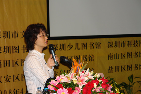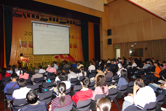 接下来,深圳科图副馆长赵洗尘首先从介绍科图地理位置开始为现场读者娓娓道来深圳科图的馆藏资源和服务,重点向读者介绍了我馆丰富的电子资源。CALIS、万方、CNKI、ProQuset等中外文论文数据库相信是检索论文的最好平台,IEEE/IEE、APS 、Dialog等一百多种分别囊括IT、化学、物理、金融、教育等学科范围的数据库更是为听讲座的现场读者展示出我馆电子资源的丰富与全面。