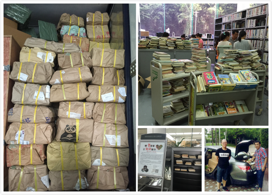 活动于9月6日正式启动,在图书馆二楼前厅设立募捐书架,读者将图书放入书架即完成捐赠,工作人员定期收集、整理书籍。活动得到各界的积极响应,深圳少儿图书馆捐赠了一千余册图书,一位不愿意具名的热心读者一次性捐出了近八百册藏书,热心企业资助图书运送费用。为期三周的募捐活动,共募集到图书近2500册,以科普读物、中外名著、地理游记等书籍为主,按中学图书馆馆藏标准挑选后,整理打包2100册交快递公司配送至三阳中学。希望这批图书给学生们的成长注入活力,让知识在爱的手中传递。