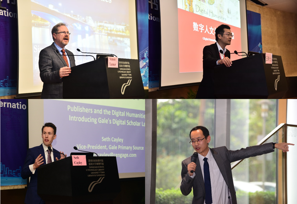 本次研讨会围绕:用于数字人文的数据、资源、网络、平台构建,高等教育与数字人文,数字人文与多学科应用研究,图书馆在数字人文发展中的角色等5大主题,探索数字人文未来发展及图书馆在数字人文发展中的服务创新模式,为图书馆人打开了服务数字人文研究应用的新大门。会上,来自图书馆学、信息技术、历史人文、人文地理、数字人文等领域共计21位国内外嘉宾发表了精彩演讲。国外演讲嘉宾10名,分别是:伦敦大学国王学院数字人文学院教授西蒙·坦纳、圣智学习集团Gale原始档案副总裁塞思·凯利、芝加哥大学计算研究所博士后克洛维斯格莱斯顿、悉尼大学艺术与社会科学系孙超、加州大学洛杉矶分校信息研究与数字人文学系助理教授米里亚姆·波斯纳、伦敦大学学院数字人文研究中心主任西蒙·马奥尼、斯坦福大学图书馆数字人文馆员格伦·沃瑟(由美国杨百翰大学数字人文助理教授布莱恩·克罗克索尔代为演讲)、大英图书馆实验室项目经理马亨德拉·莫赫伊、美国杨百翰大学数字人文助理教授布莱恩·克罗克索尔、杜克大学人文科学系负责人艾丽安·哈瑟尔甘迪。国内演讲嘉宾11名,分别是:北京大学图书馆副馆长聂华、武汉大学信息资源研究中心副主任王晓光、上海图书馆副馆长刘炜、浙江大学人文学院教授徐永明、浙江大学图书馆副馆长黄晨、中山大学资讯管理学院副研究员肖鹏、山东大学历史文化学院副研究员邱伟云、上海交通大学人文学院讲师赵思渊、复旦大学历史地理研究中心教授侯杨方、深圳大学人文学院讲师叶亢、北京大学汇丰商学院副教授叶韦明。