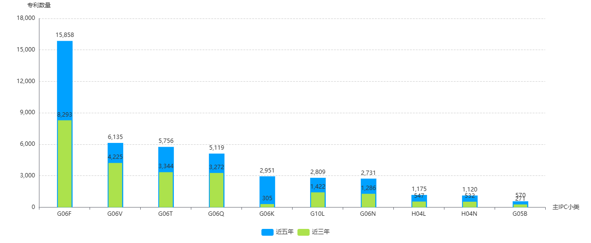 专利技术创新活跃度:除技术领域G06K(图形数据读取;数据表达;记录载体;处理记录载体)外,其余技术分类均有将近过半的申请量来自近三年,表明深圳在人工智能领域技术创新非常活跃。