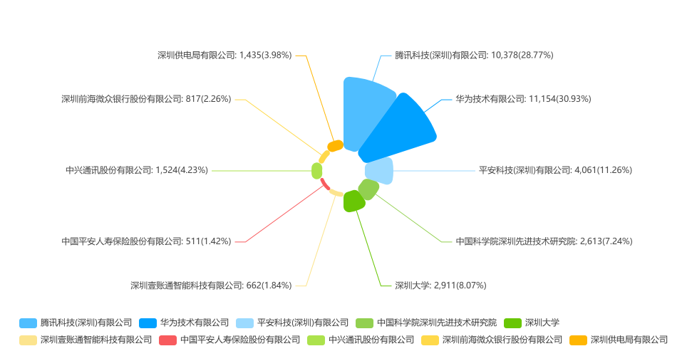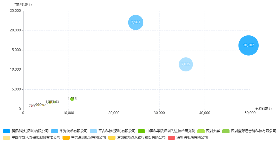 申请人竞争力:腾讯科技(深圳)有限公司、华为技术有限公司、平安科技(深圳)有限公司三家企业的竞争力远远领先其他申请人,且三家企业在竞争上也互有优势。