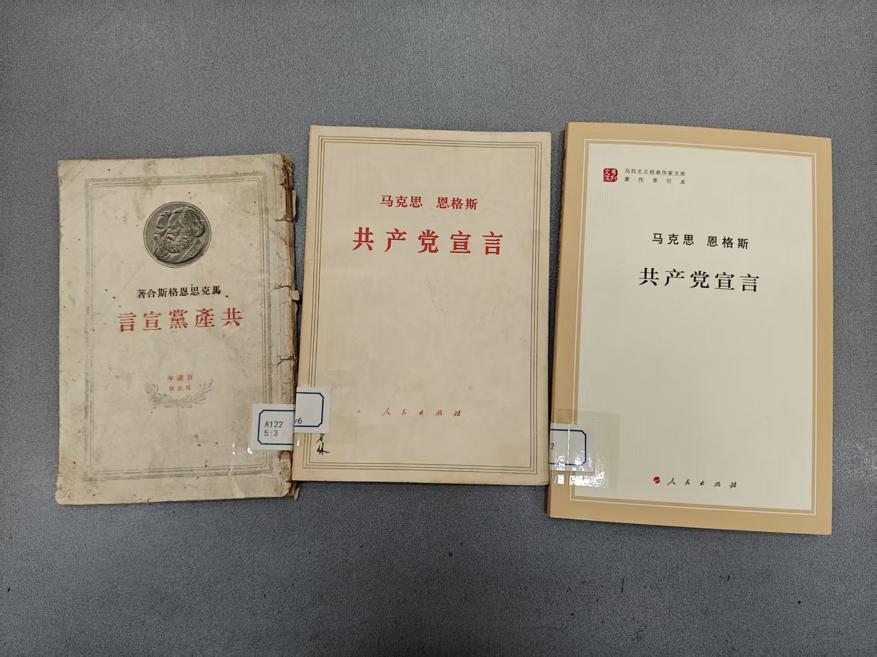 2、体现北京大学爱国主义思想与情怀的三版《共产党宣言》: