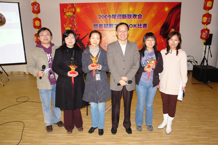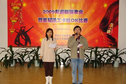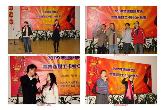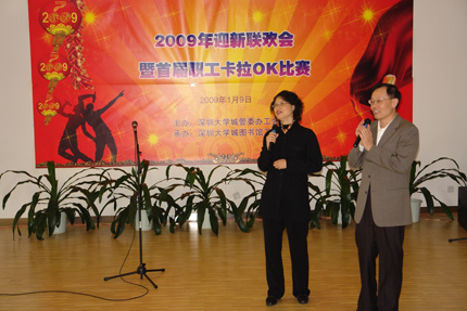 一元复始,万象更新。2009年1月9日下午2:30,由图书馆承办的深圳大学城管委办新年联欢会暨首届职工卡拉OK大赛在图书馆4楼多功能厅举行,管委办、网络中心、后勤公司及图书馆全体员工参加,晚会现场彩球飞舞,灯光璀璨,处处流淌着欢声笑语,人人互赠祝福问候,庆贺新的一年的到来。