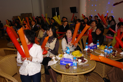 “互动游戏”环节,把整个晚会推向了高潮。馆员们积极热情地参加“大吉大利”、“牛气冲天”、“同心岛”、“东拼西凑”等游戏活动,有趣的游戏有的把大家逗得捧腹大笑,有的让大家紧张万分,晚会气氛空前热烈。