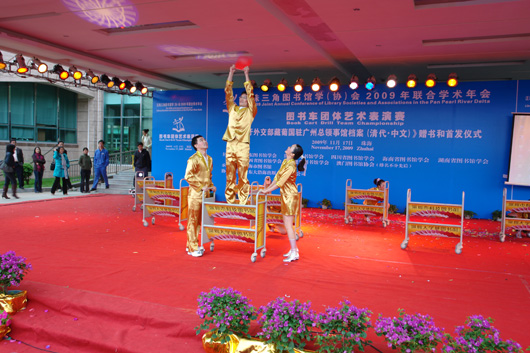 11月16日至19日,“泛珠三角图书馆学(协)会2009年联合学术年会”在珠海市图书馆举行,来自广东、四川、湖南、海南、福建、江西、贵州等九省市及澳门的图书馆学(协)会负责人和400多位图书馆专家,全国20多家知名出版社和图书发行、销售单位共同研讨了图书馆数字化管理、资源共享和改善公众服务等图书馆事业发展遇到的重大问题。