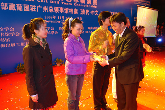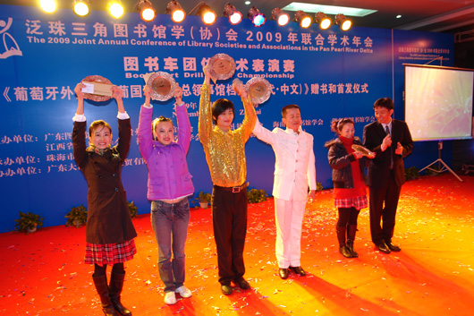我馆代表队第十二个出场,李桂芬副馆长领衔表演,通过动感、热情的韵律操、配合变化多种的书车造型展现了图书馆员的日常工作,年轻、富有朝气随时迎接工作中的挑战,热情、乐观地工作与生活的主题赢得了现场裁判和嘉宾的一致认可。“你们的表演犹如凛冽寒风中的一束火焰让人感受到了作为特区一座年轻图书馆的精神风貌”一位评委赛后评价说。