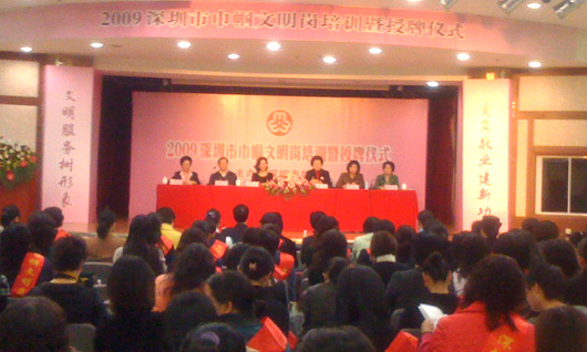 2009深圳市“巾帼文明岗”培训暨授牌仪式12月9日举行。我馆被授予深圳市“巾帼文明岗”荣誉称号,与我馆一同授予这一荣誉称号的教育局系统单位还有深圳市职业技术学院医护学院、深圳市第二高级中学高二年级组、深圳职业技术学院计算机基础教学部计算机与网络基础教研室。