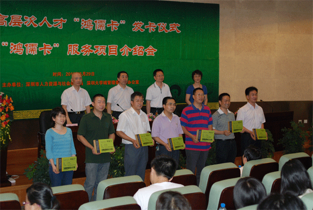 2010年5月29日,深圳市高层次人才鸿儒卡发卡仪式暨鸿儒卡服务项目介绍会在深圳大学城图书馆隆重举行。