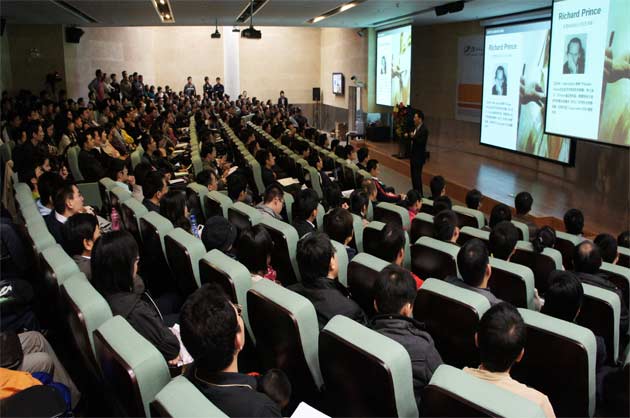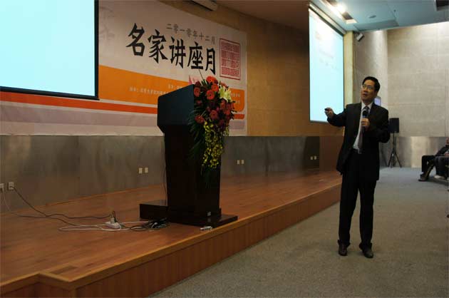 12月25日下午,图书馆四楼学术报告厅内座无虚席,地毯上、过道里坐满和站满了听报告的读者,临时开放的多功能厅也坐满了听众。除个人读者外,深圳商报社品牌部的全体员工、光明高级职业中学的120名教师和百泰等珠宝企业的设计团队也齐聚图书馆。清华大学深圳研究生院艺术设计中心主任黄维教授用他那睿智的思想、幽默的语言、渊博的学识和迷人的魅力为近500名读者送上了一道丰盛的圣诞大餐。