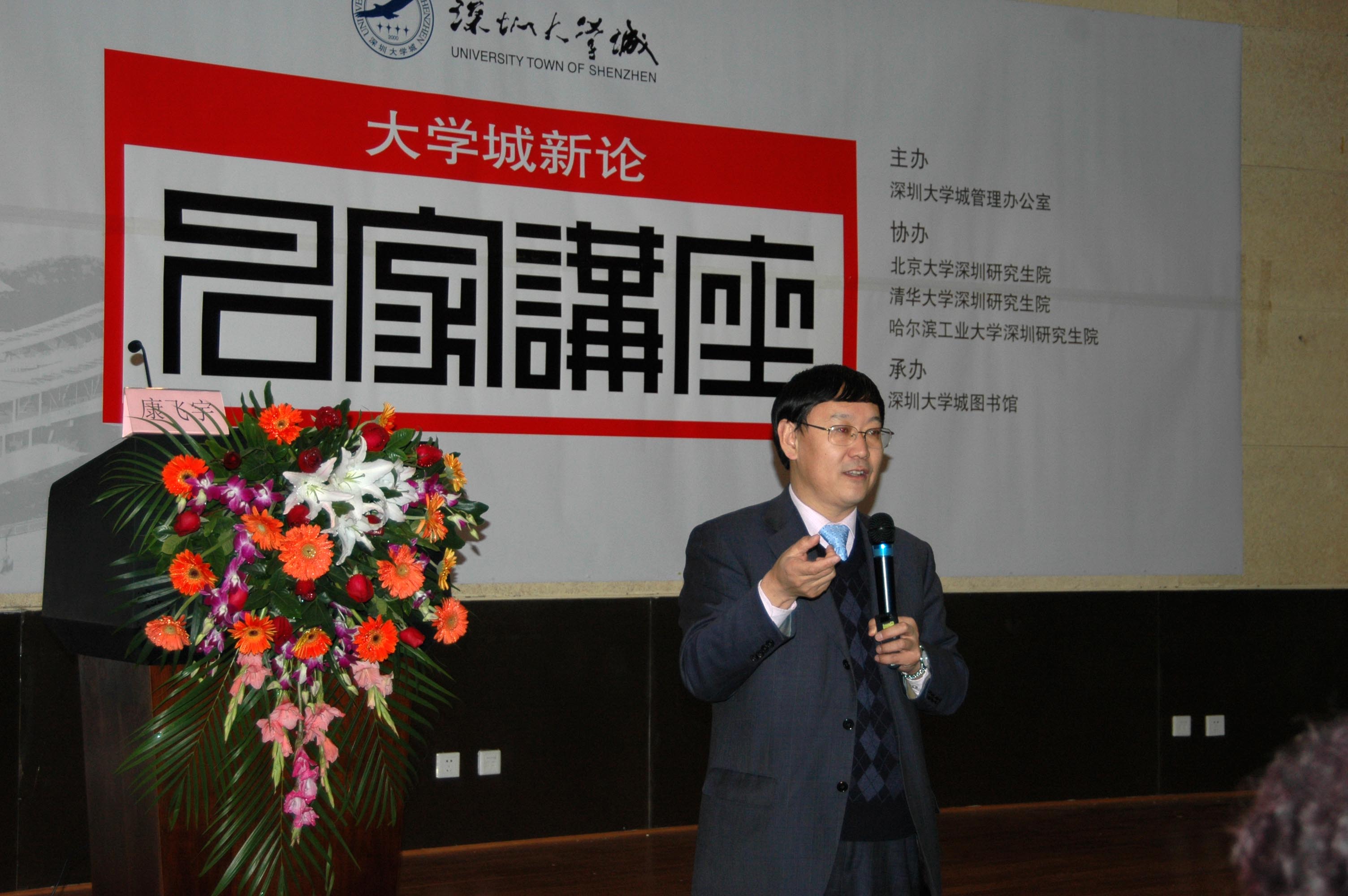 2011年1月8日下午,深圳大学城图书馆四楼学术报告厅内座无虚席,大学城学生、企业研发人员和市民济济一堂,大学城新论·名家讲座的首场讲座在这里举行。讲座邀请到清华大学深圳研究生院常务副院长、我国著名新型碳材料专家康飞宇教授,康教授以“中国新能源发展与节能减排”为主题,为现场读者奉献了一场高端学术讲座。
