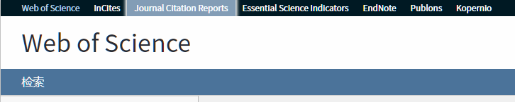 在Web of Science 平台顶端菜单栏点击“Journal Citation Reports”。然后在搜索框填入要搜索的期刊名。点击搜索即能看到该期刊的JCR相关数据。(馆外读者须登录VPN后再进入数据库)示例如下: