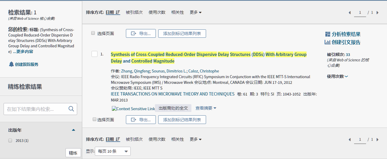 以文章“Synthesis of Cross-Coupled Reduced-Order Dispersive Delay Structures (DDSs) With Arbitrary Group Delay and Controlled Magnitude”为例。