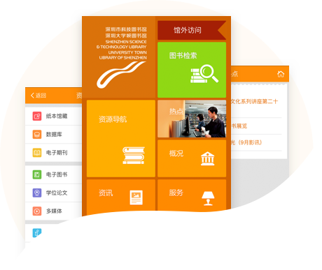 深圳大学城图书馆微信公众号可以帮助读者在微信客户端上实现与图书馆手机版的无缝链接,关注微信公众号,读者还可以实时获取到图书馆的资源、讲座、培训等活动的最新资讯,并且还可以实现对馆藏资源的检索。